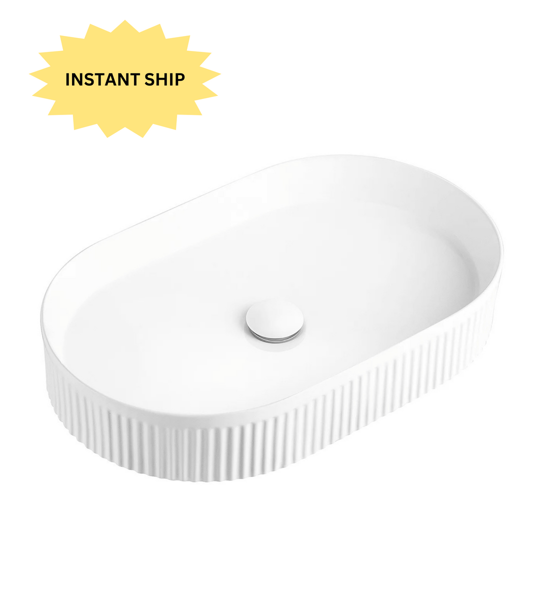 Otti Kensington French Fluted Oval Basin Matte White 580x360x100mm Size ...