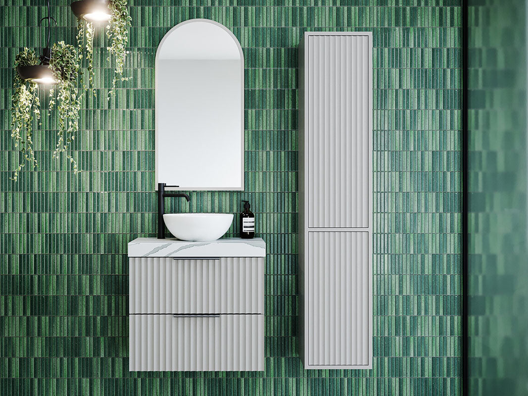 This bathroom side storage cabinet is part of the Riga vanity range, available in Matt...