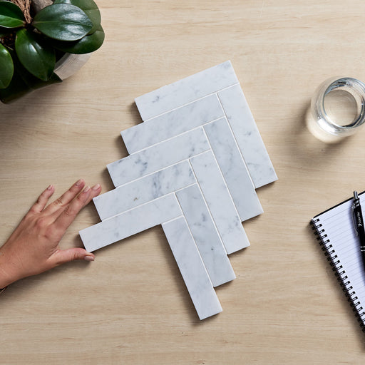 The Eterna Carrara Marble Range embodies timeless luxury with classic white marble veining. Available in fan, herringbone, brick, square, and penny...