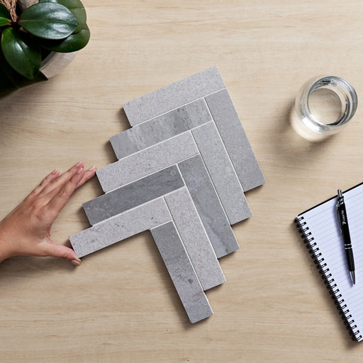 The Eterna Grey Marble Range delivers a versatile neutral palette through natural marble mosaics. Featuring fan, herringbone, brick, and penny-roun...