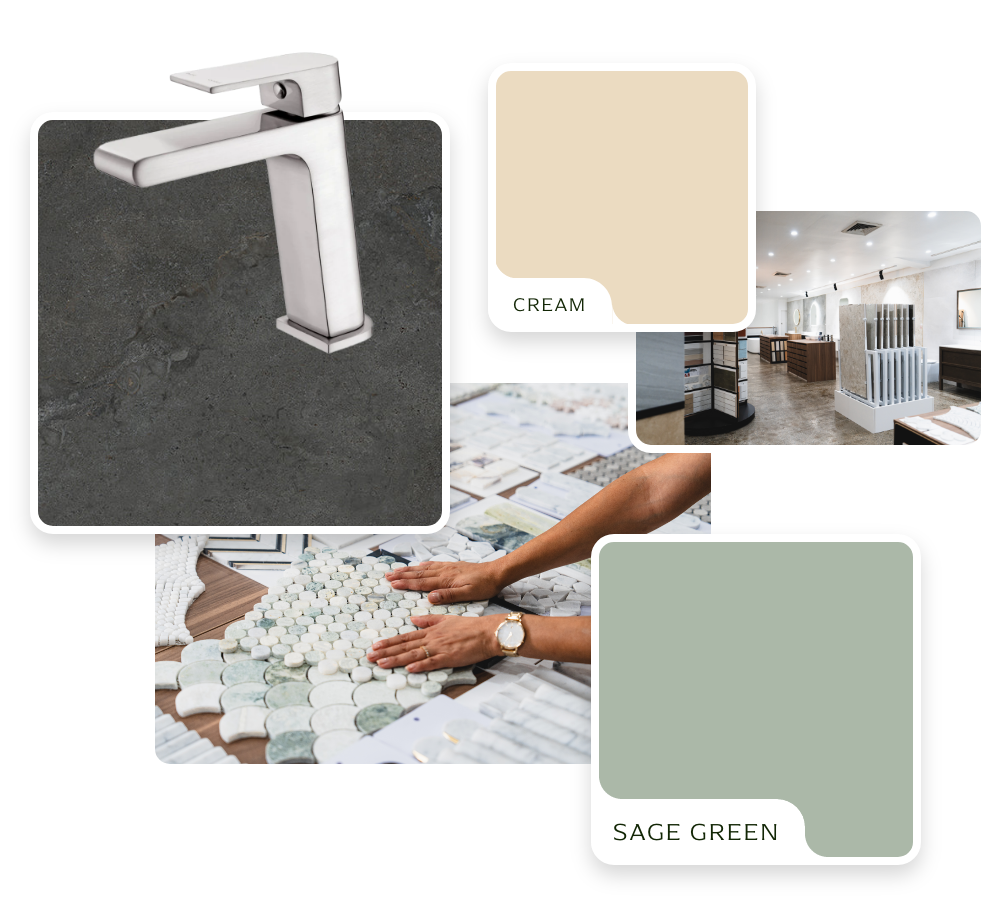During your consultation, our designer will curate a custom flatlay and assist with tile selections tailored to your plans and design ideas.