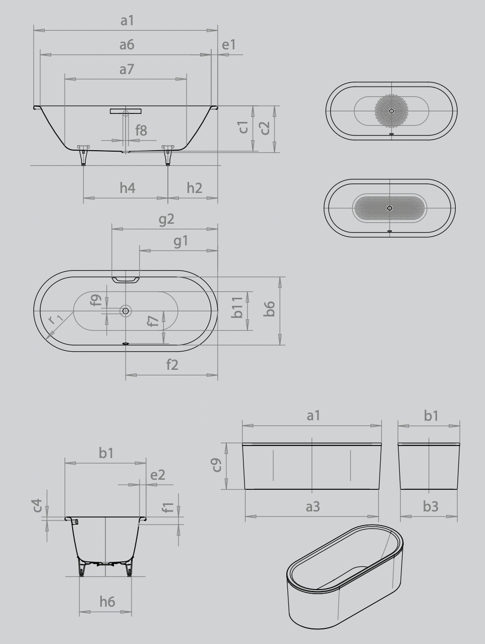 Classic Duo Oval double-ended bath with identical backrests and centrally positioned waste