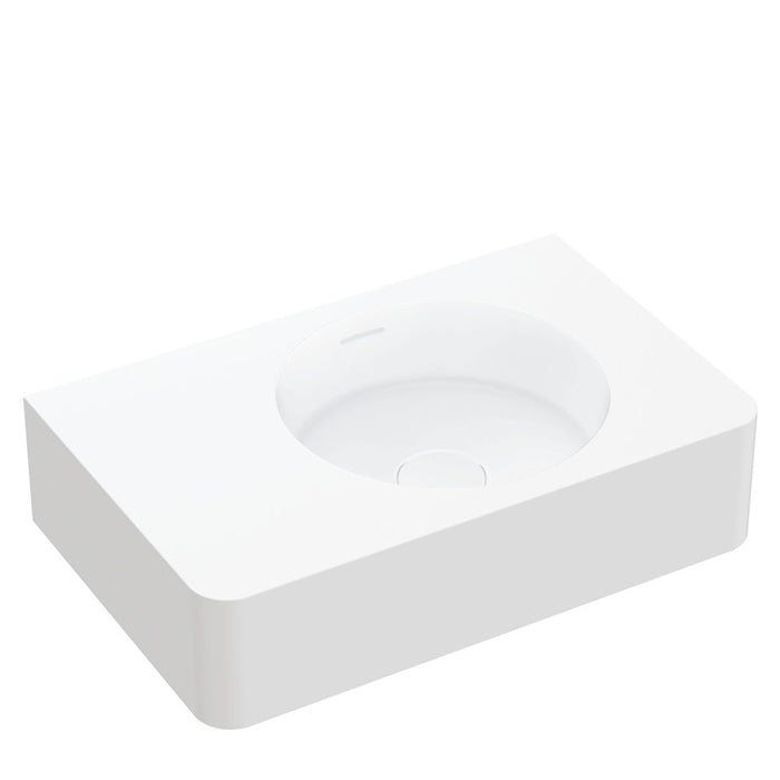 Designed for compact spaces without compromising on style, the Encanto 470 Wall Basin features a minimalist, matte white solid surface finish. Its streamlined form, built-in overflow, and no tap hole configuration make it ideal for modern and refined interiors. Perfect for powder rooms or ensuites where space and sophistication matter.