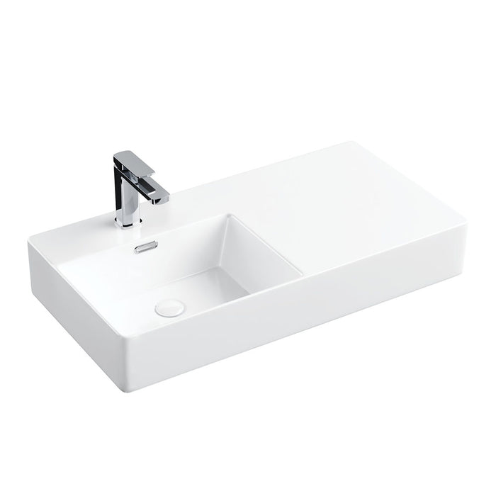 Designed for both functionality and modern aesthetics, the Petra 800 Left-Hand Wall Basin features a spacious integrated shelf and sleek gloss white finish. Crafted from durable vitreous china, it is perfect for residential or commercial bathrooms and can be installed to meet AS1428.1:2021 accessible compliance standards.