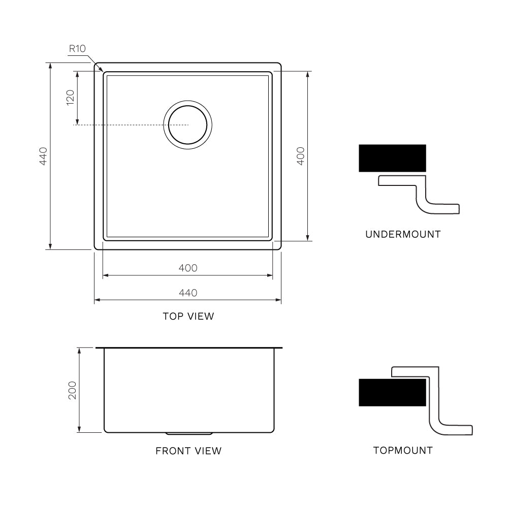 Quadro Single Bowl Sink Undermount/Topmount 440mm