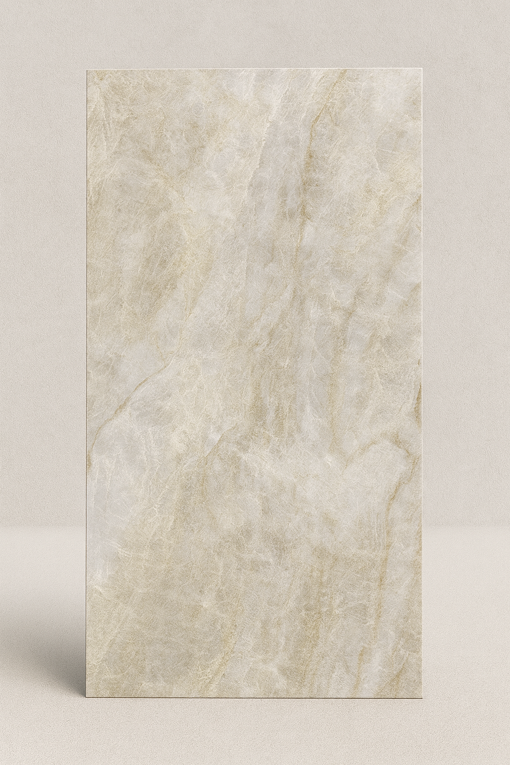 The Taj Mahal porcelain tile offers a soft, luxurious stone look with warm champagne tones and elegant, flowing veining. Its natural quartzite-inspired design brings calm, modern sophistication to bathrooms, kitchens, laundries, feature walls, and benchtop-style applications.